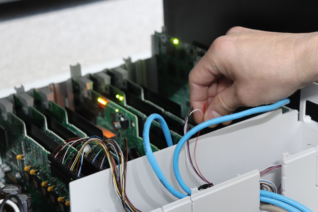電気工事のお仕事は、大きく一般住宅向けと施設向けに分けられます。“片山電機”ではこの中でも主に施設(工場)への施工を承っています。工場などにおける制御盤組付けや機内配線の施工などを始め、電灯分電盤・動力制御盤の改修・改造工事、それに伴う配線工事といったことが、主な仕事内容です。